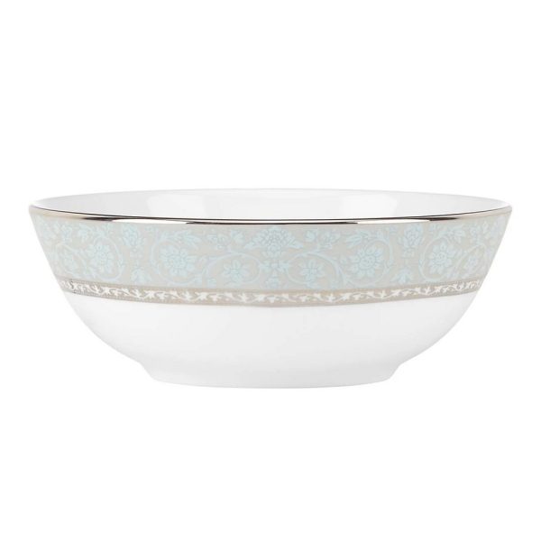 Featuring a texture of lace florals in sky blue along its side, trimmed in precious platinum, this durable white bone china place setting bowl is the ideal complement to springtime meals with friends and family. This item is dishwasher-safe, for added convenience.