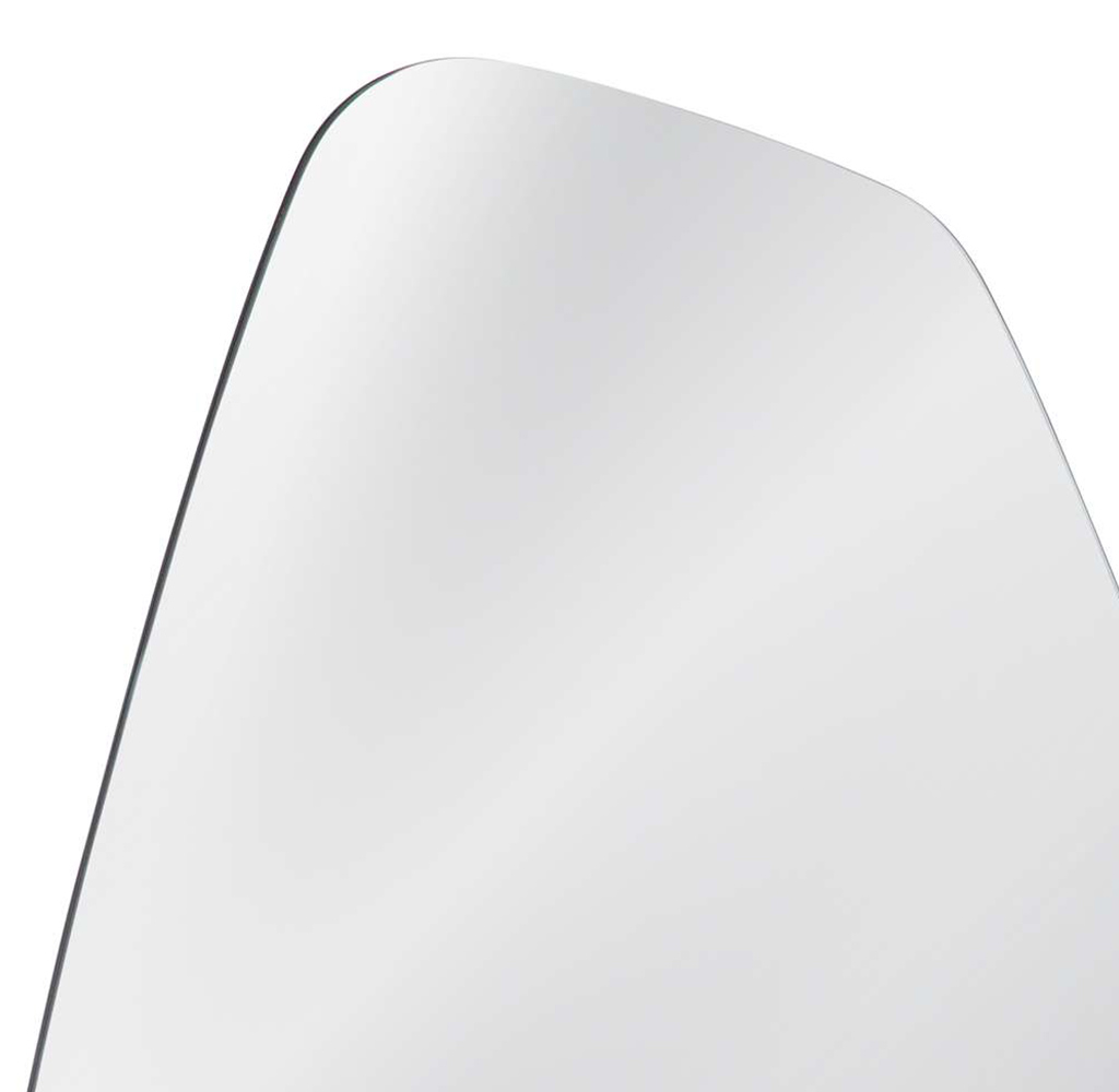 The Carlton Wall Mirror stands out with its unique asymmetrical shape, edged with a thin silver frame that adds just a touch of glamour without overwhelming its sleek modern style. The clean lines and irregular contour of this mirror provide a contemporary look, while the silver accent hints at a luxe aesthetic. It’s a striking piece that would catch the eye in a minimalist or modern-themed space, bringing a sculptural element to the wall it adorns.
