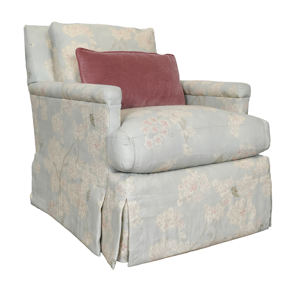25,699 AEDA timeless centerpiece, the Abingdon Skirted Sofa showcases graceful curves, a deep seat, and a tailored skirt; blending classic elegance with inviting comfort.
