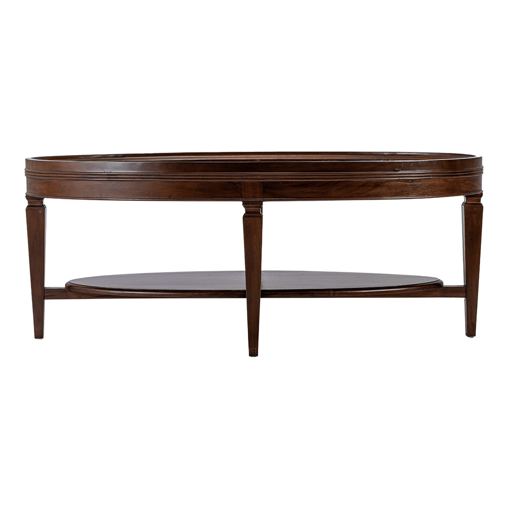 This classy looking wooden coffee table will complement your minimalist yet modish interior. With its solid wood construction, natural color variation and lower open shelve, this unique table will add the right amount flair to your space.