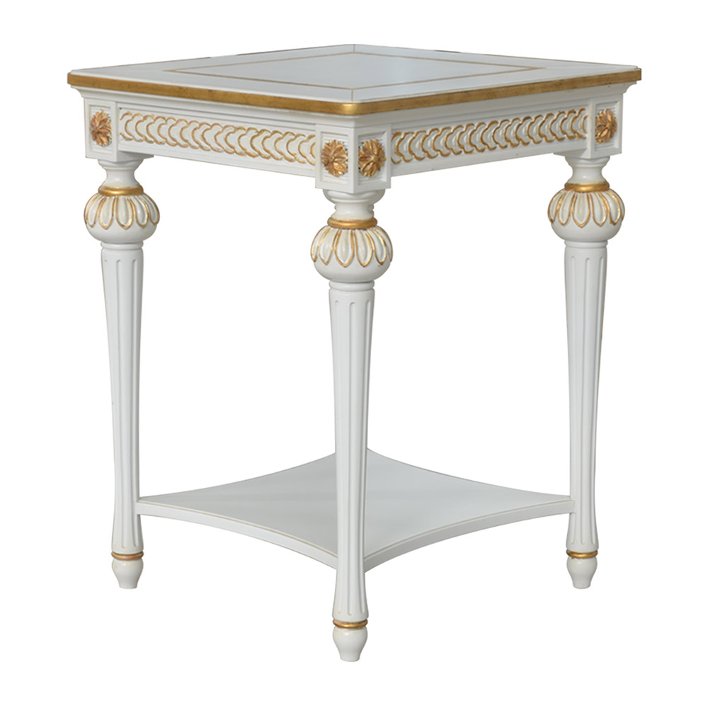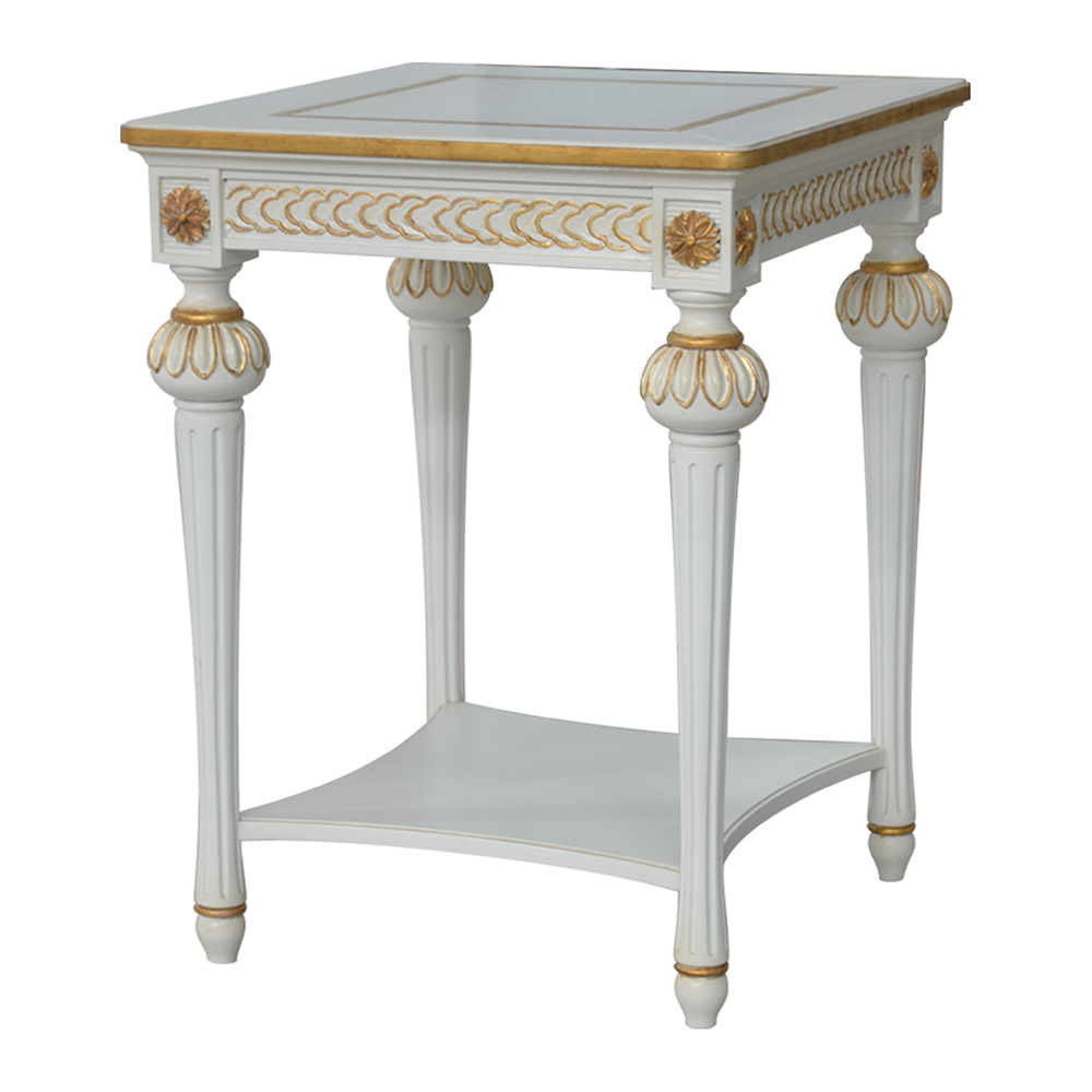The dazzling Donna end table is the perfect addition to your interior. Featuring an intricately carved design with a lower shelf supported by solid wood and artistic engraves on its four legs.
