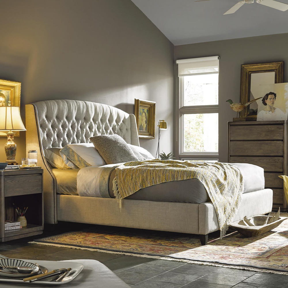 The elegant Halston Bed features a winged button-tufted frame and is finished with a delicate nail head trim.