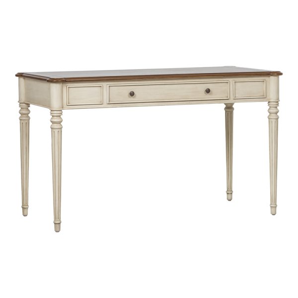 The Krissa table is a unique piece which can function as a dressing table, and also as a desk table. This piece adds tasteful elegance to any space with its white finish and engraved wood. It is both convenient and durable for a life time of use.