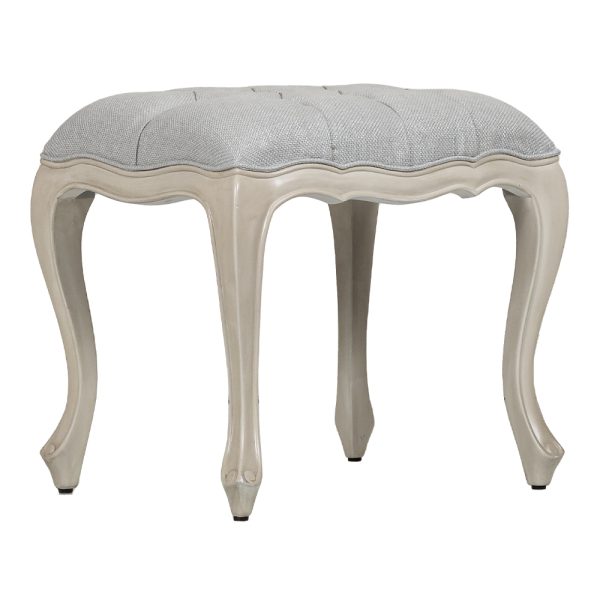 Enhance your space with enchanting presence of Nadia Stool. Distinguished by curvy lines, and upholstery padded structure, it will offer you the ultimate comfort. With its nail-head trim and turned legs, this sofa imbues chic vibes in the room.