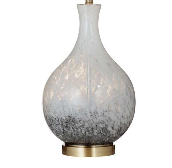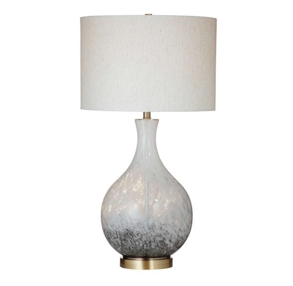 1,299 AEDOriginal price was: 1,299 AED.974 AEDCurrent price is: 974 AED.The Angelica Table Lamp showcases a white and grey swirl pattern with brushed nickel accents at the base and is complimented with a white linen drum shade.