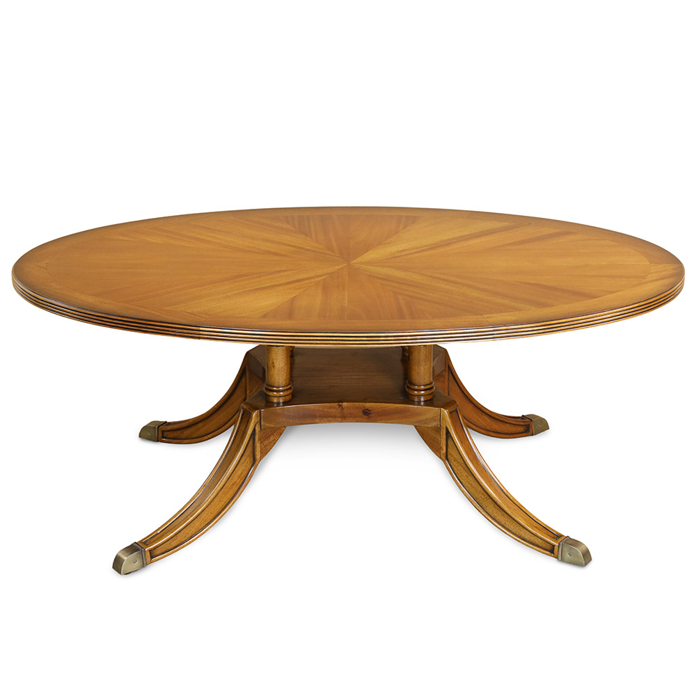 Elegant and inviting, the Gloucester Oval Coffee Table features a smooth, oval tabletop crafted in warm brown wood tones. Its gently tapered legs and classic silhouette bring timeless charm to any living space, blending traditional design with everyday functionality.