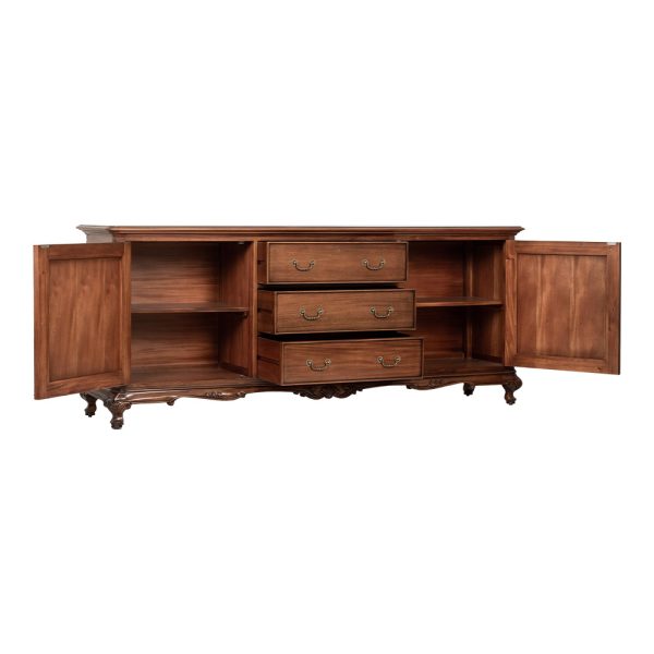 With its clean lines and natural wood tones, the Versailles Sideboard is a stylish addition to any space. This Sideboard buffet pairs a natural dark finish with chic handcrafting for a cool, contemporary look.