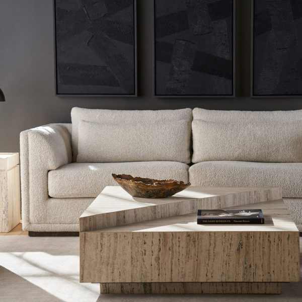The Theo sofa blends modern design and comfort seamlessly. Measuring 91 inches wide, it anchors spacious living rooms with its wide stance. Clad in textured Sheldon Ivory fabric, it offers both tactile appeal and versatility. Its spring down cushions ensure a plush seating experience.With clean lines and slot arms that seamlessly integrate into the backrest, Theo exudes a minimalist charm. Its obscured base enhances its visual lightness, giving it a floating appearance.Warm and inviting, Theo adds a touch of sophistication to any space. Its simple yet refined design suits various interior styles, from minimal to eclectic.