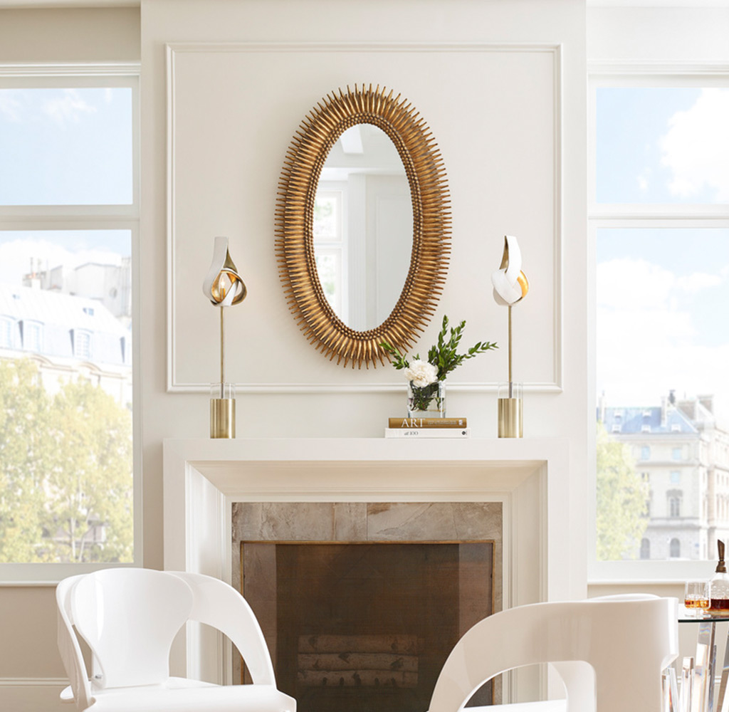 Enhance your home by adding depth, style and function with our exquisite Lucius Mirror. Crafted of composite with an antique gold leaf finish, this 46″ oval wall mirror will make a statement in an entryway or great room.