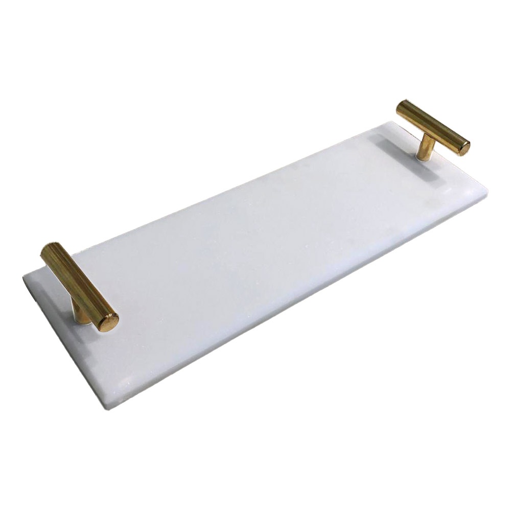 This unique tray is perfect for decoration and for serving beverages as well. its metal handles and marble texture gives itmake it a chic look.