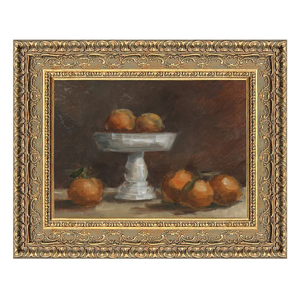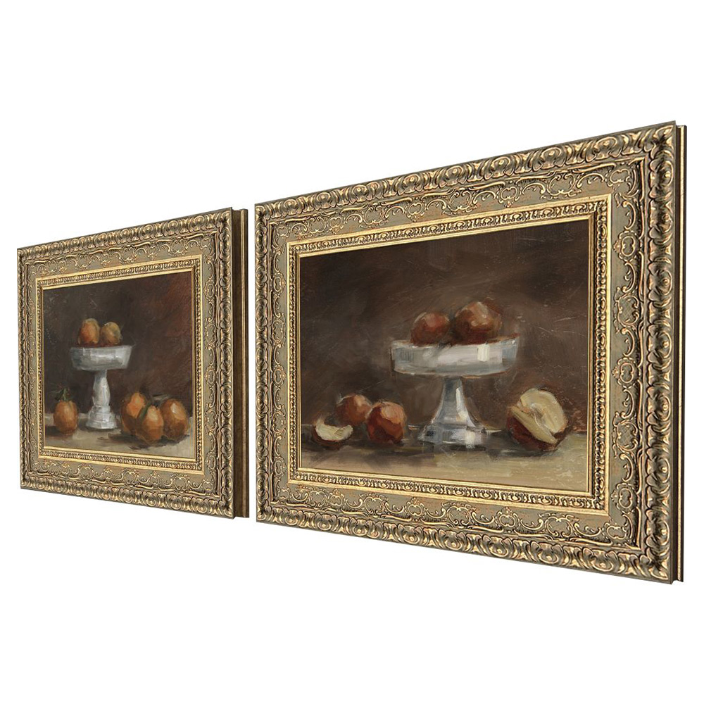 The Fruit & Pottery Artwork set of two traditional still life’s captures timeless beauty with rich, hand-applied enhanced gel finishes. Each piece is elegantly framed in an ornate baroque-style moulding with an antique gold finish, adding sophistication to any classic interior.