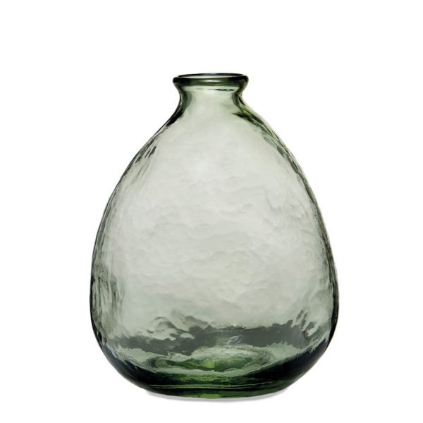 This clear green glass vase has an organic texture that makes it unique and special. Its shape is reminiscent of the ancient vessels used to store wine and oil, but with a modern and elegant touch. It is available in two sizes. In addition, this vase can be combined with other vases, vases or furnishing accessories from the same collection to create a harmonious and sophisticated atmosphere in any space.