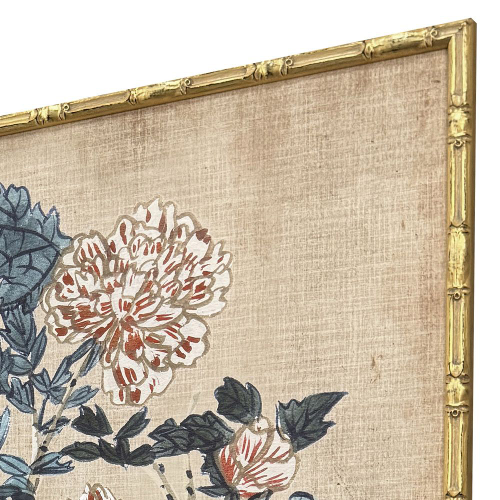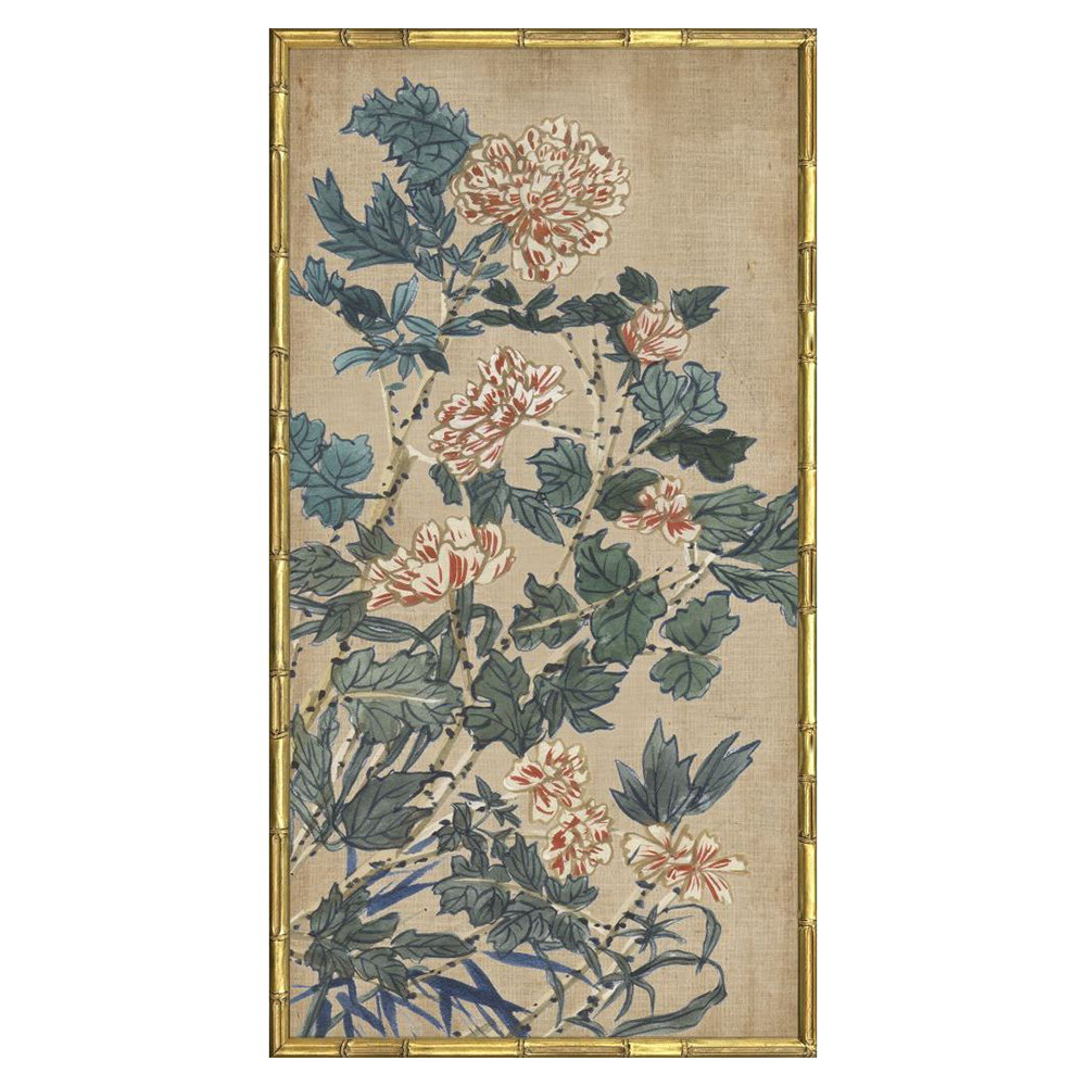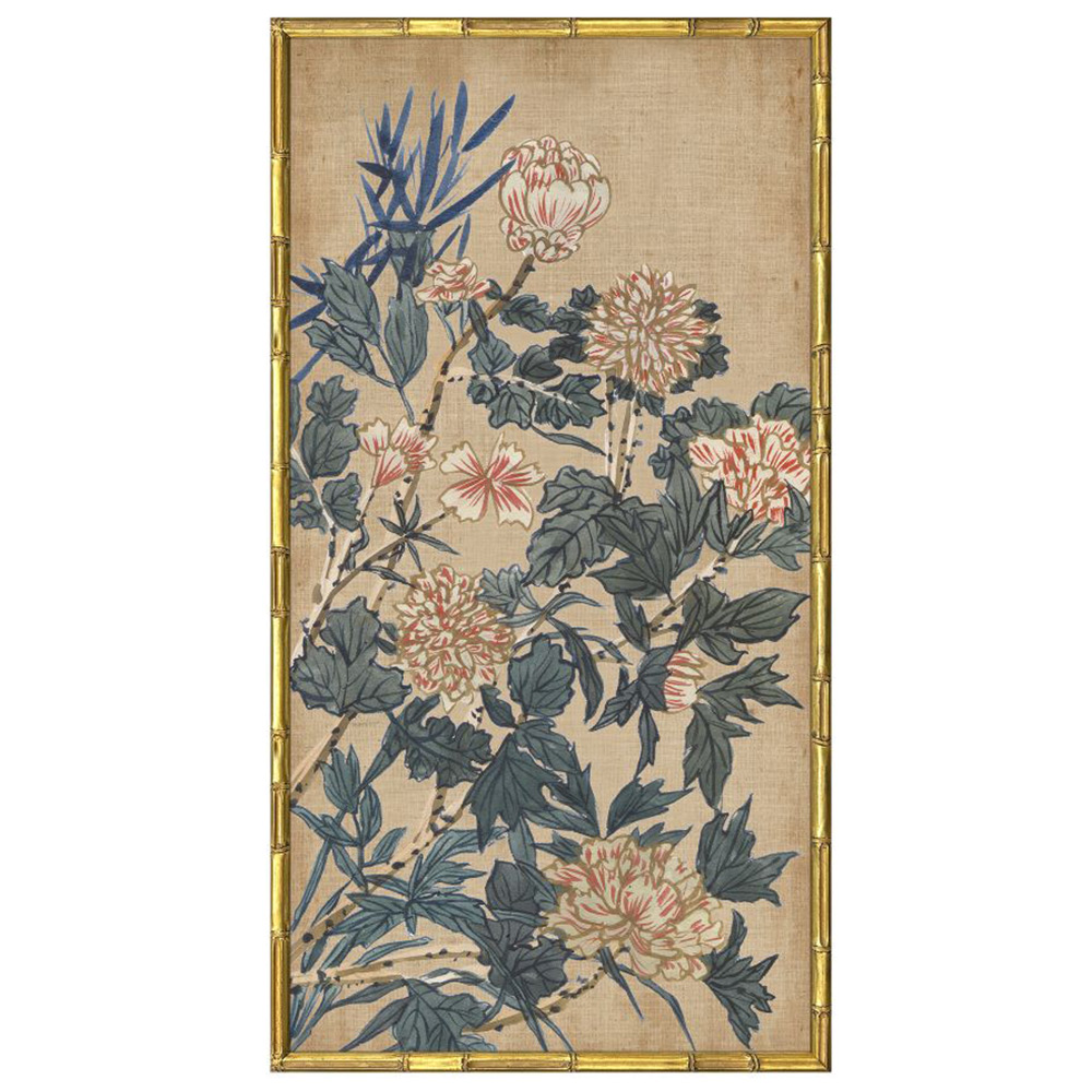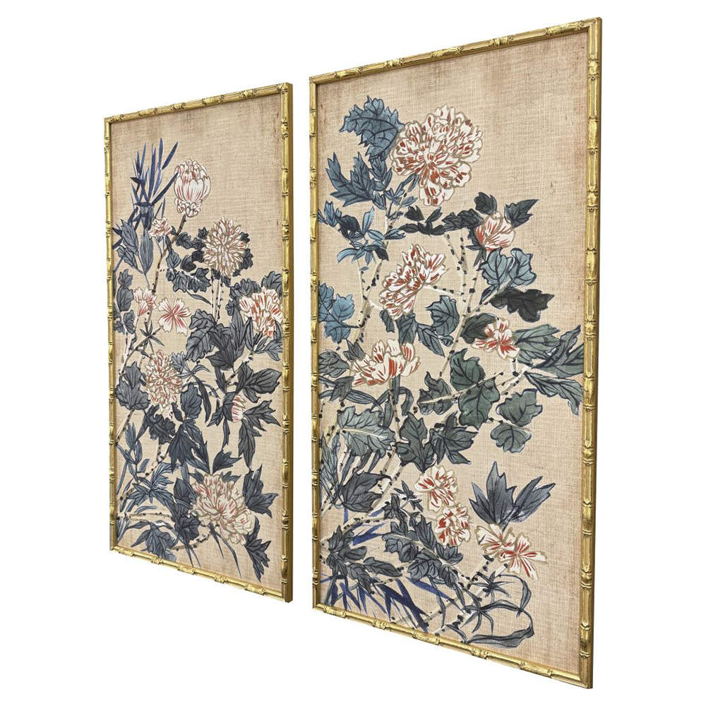 Veil of Ink & Bloom Artwork showcases chinoiserie-inspired florals that unfold in a lush, refined color palette. Framed in antique gold wood with a bamboo-pattern embossing, this set of two exudes timeless elegance and artistry.