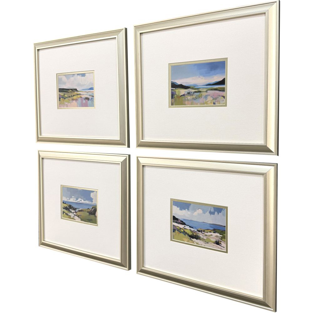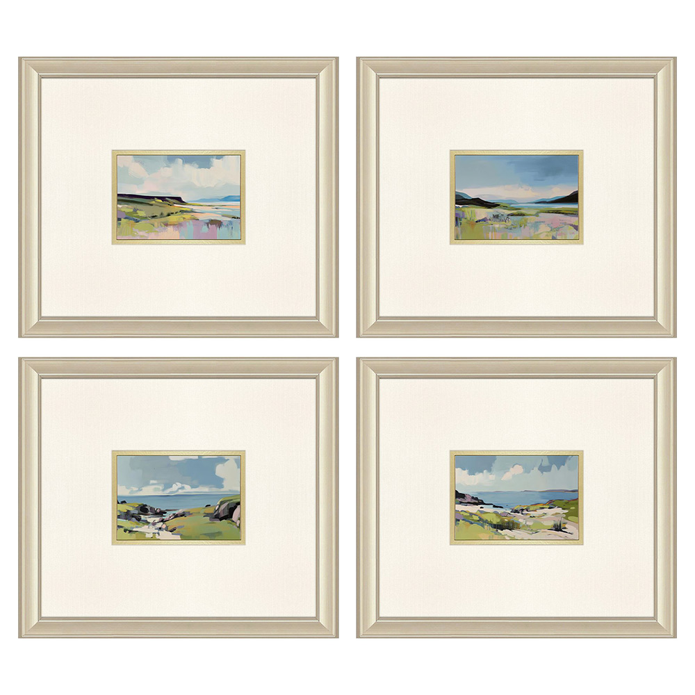 Infuse your home with vibrant natural beauty through Verdant Water Artwork, a set of four dazzling landscapes featuring serene water views. Each piece is enhanced by a linen-look ivory mat and framed in a champagne gold finish moulding.