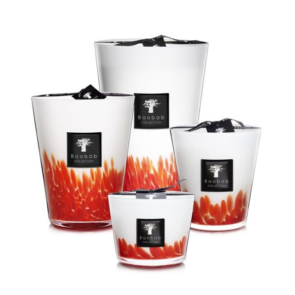 The Feathers Maasai scented candle is made in opaline hand-blown glass with touches of red. Its mysterious fragrance will take you to the heart of the Maasai lands where men in red draperies roam the searing savannah.