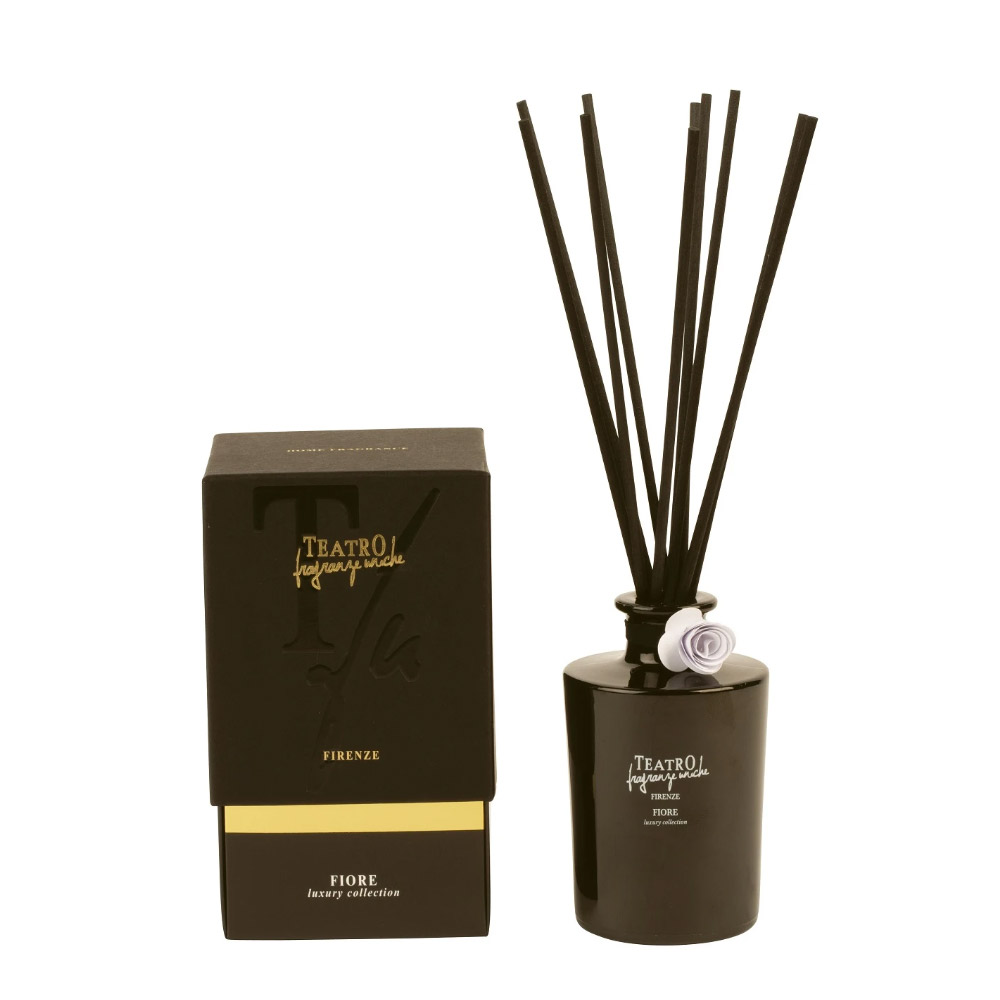 Teatro’s Fiore Luxury sticks is a luxurious room fragrance presented in sleek bottle and back sticks designed to lightly scent any room. It emits a sophisticated floral fragrance of a beautiful bouquet of white flowers, gently tapered with a tinge of bergamot and cedar wood.