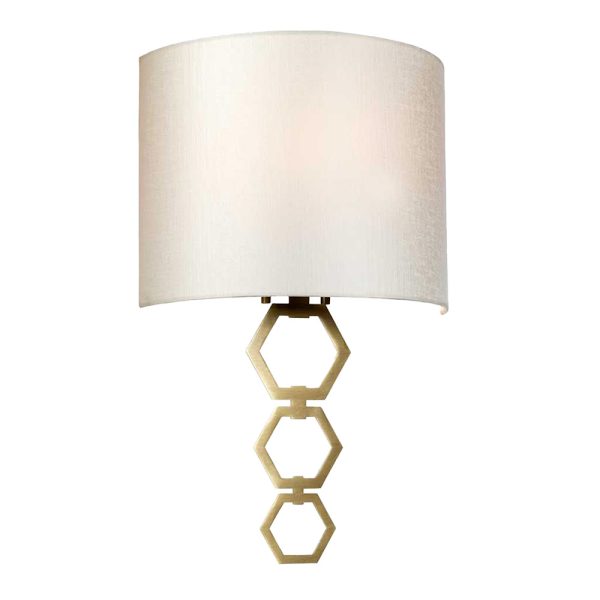 This medium sized Clark wall light in an aged brass finish, has a hand crafted faux silk shade.