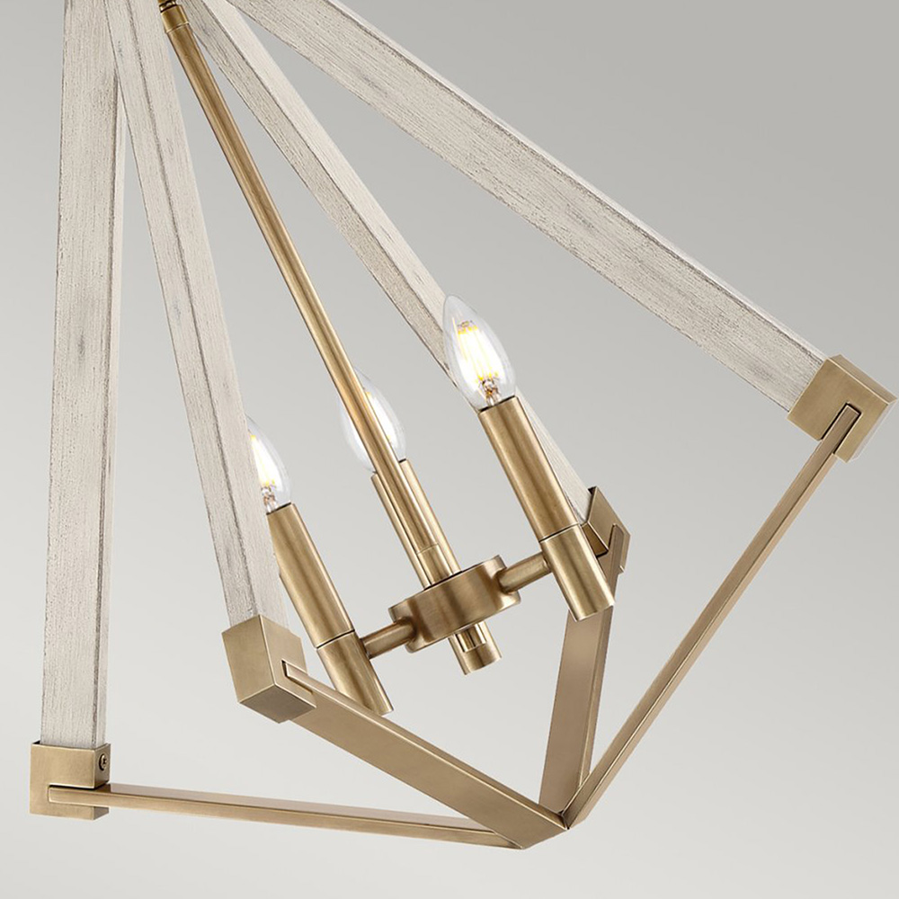 The View Point stands out with bold lines and vintage finishes, showcasing a diamond silhouette with a metal frame painted in a convincing whitewashed wood finish. Accent caps and a center column in a soft brass hue complement the overall design.